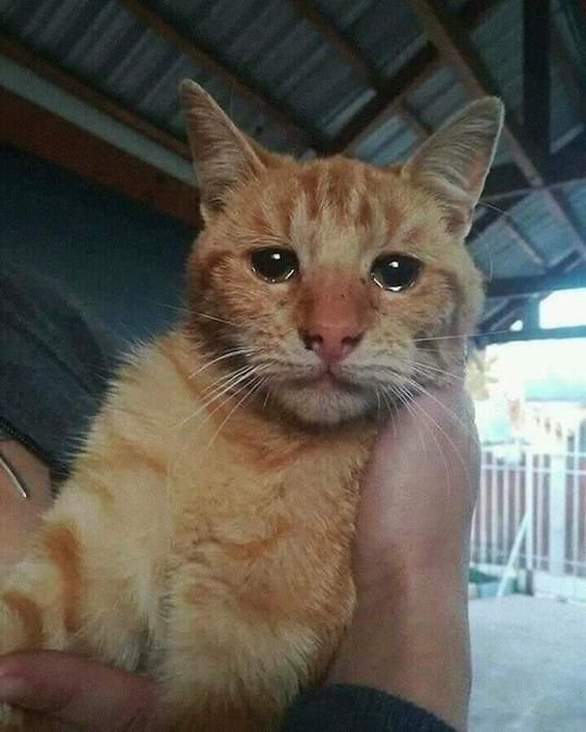 1. This cat was abandoned and this is his photo minutes after being rescued