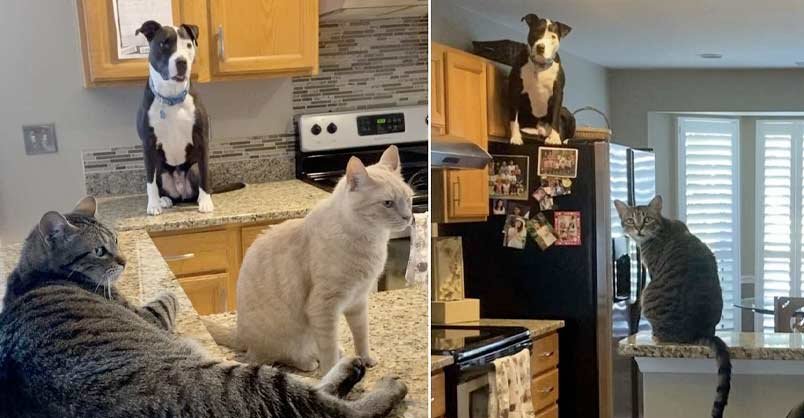 In a household dominated by pit bulls, nobody expected a tiny grey kitten to become the undisputed ruler of the pack.